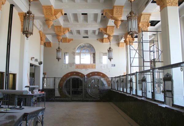 In the summer of 2007, I happened upon an Open House for the building's renovation into condominiums. I got to see several units nearly completed, renovation in the old banking areas, and the grand second floor lobby, still complete with its teller windows and massive vault door.