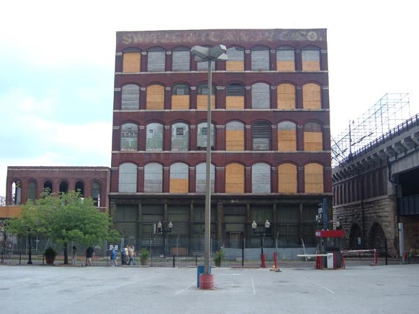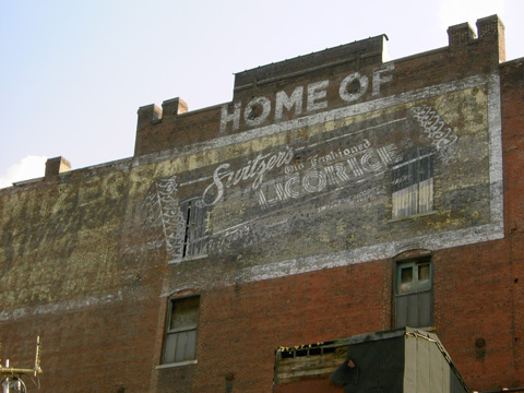 The building dated from 1874; it was built for a manufacturing company and later occupied by the Switzer Candy Company. The building's south face carried their painted sign long after they'd left: "Home of Switzer's Licorice and Cherry Red Candy". Switzer vacated the premises in the 1970s, and the building stood empty for the rest of its days, even as the district around it began its transformation into a tourist and nightlife hot spot. The Switzer Building began conversion to lofts and commercial space in 2006.