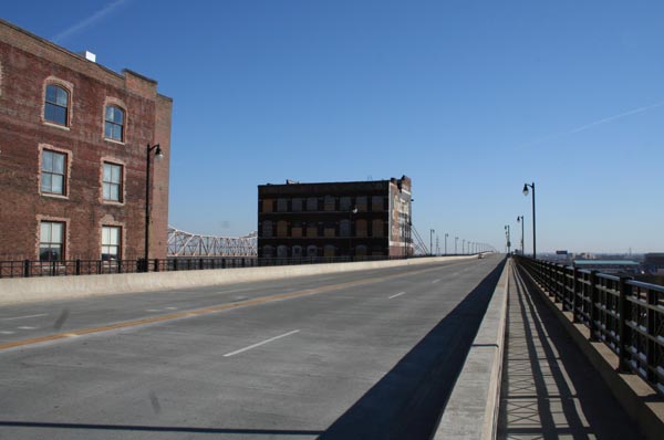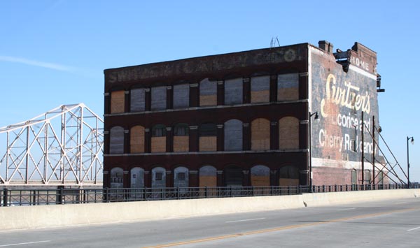 The neighboring buildings of Laclede's Landing show the scale and character of the riverfront and its adjacent blocks before most of the area was declared blighted and wiped out in the 1940s. Modern ideas of historic preservation were in their infancy then; the notion of preserving an entire district was utterly unheard of. Furthermore, many of the buildings had entered that most deadly period of age, around fifty to eighty years -- the point at which they are viewed as "obsolete", are taken for granted as commonplace, and quietly obliterated without protest.