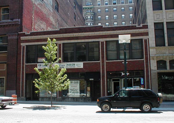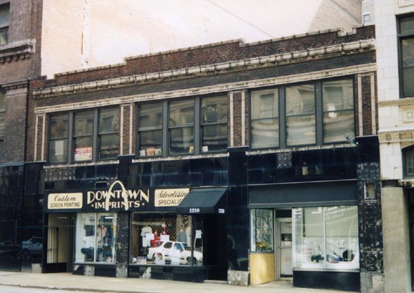 Like many others, this two-story commercial building was "modernized" at street level. Unlike many others, however, the "modernization" didn't look at all that bad. Nevertheless it was removed in a 2002 remodeling.