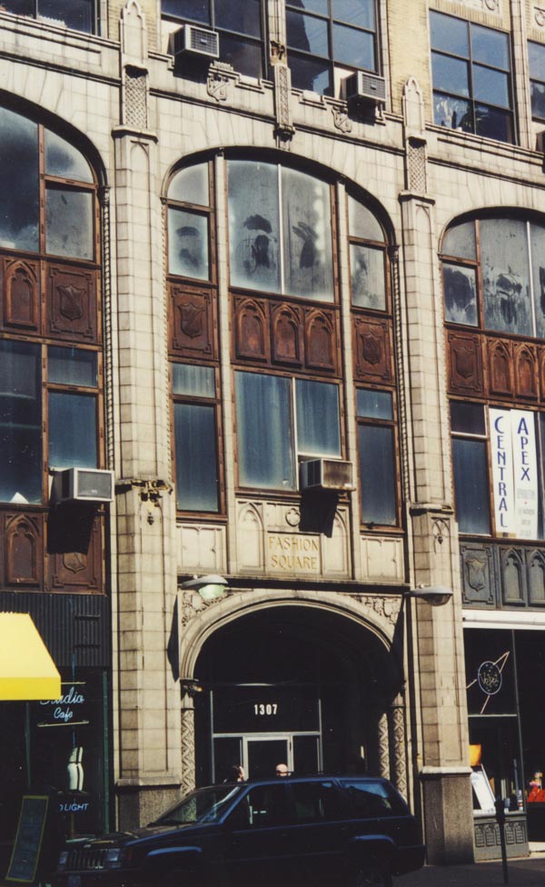 Fashion Square was built with the intention that it would be a showcase of style for clothing and hat wholesalers. It featured basement garage parking for salesmen. In 2004 it was converted to a mixed use building including residential above with retail remaining at street level.