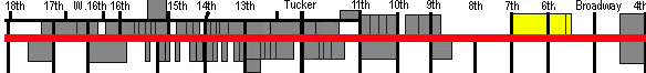 After a period of decline lasting into the 1970s, the building was renovated in 1987 as office space and remains in use today. As with the previous block, this one is isolated from the string of older buildings found to the west -- but the profile view of their heavily articulated street elevations, with the old Stix building rising beyond, is quite impressive.
