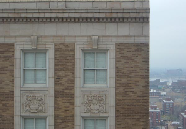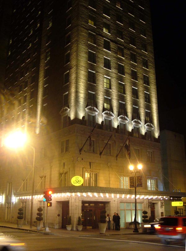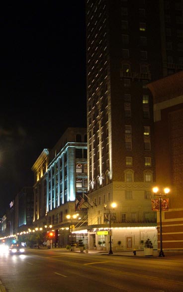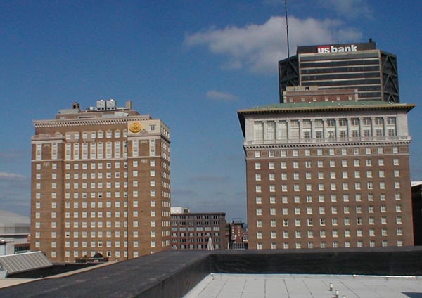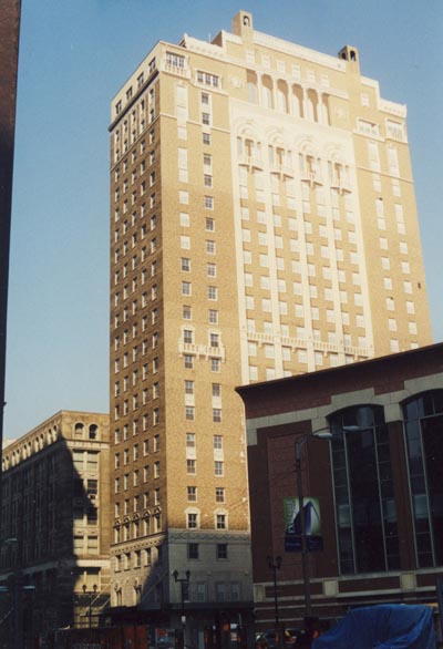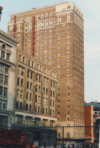 This tall, thin tower was the city's tallest hotel at the time of its opening. After decades of prosperity, it declined into the 1970s. A 1986 plan to convert it to apartments ultimately collapsed, leaving the building in the city's hands and vacant for a decade.