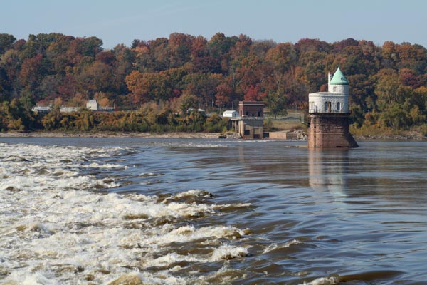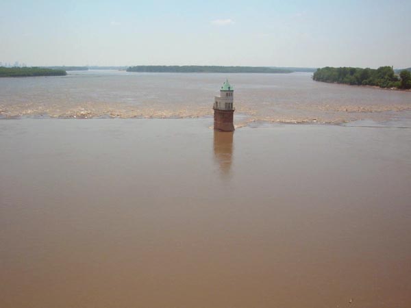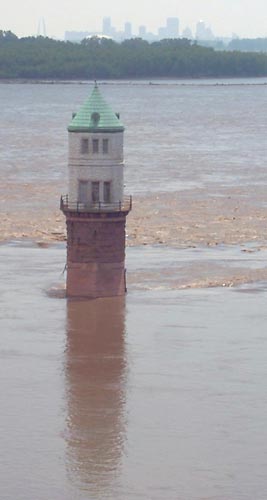 Like Tower #2, it is situated just downstream from the old Chain of Rocks Bridge. The bridge formerly carried Route 66 across the Mississippi and into St. Louis. After 30 years of abandonment, it was re-opened as a pedestrian and biking path, and again offers impressive views of the two towers as well as its own massive steel structure.