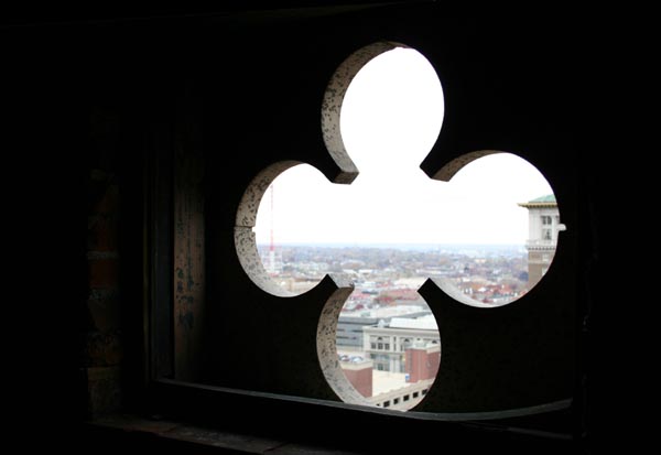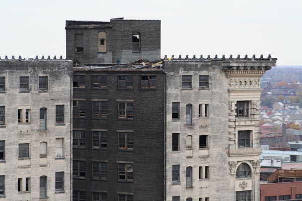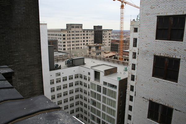 Stepping onto the roof was a thrill; half of downtown lay at our feet, and the perspective on neighboring buildings like the Paul Brown and the Syndicate Trust was fantastic. A different kind of thrill came from knowing that the roof was not in the best of conditions after 30 years of neglect; we were told to avoid several large areas. I shot some high-powered views of our surroundings before we headed down.