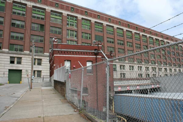 A small building outside the central complex. Only one story at the street, the Shipping Office is actually a full three stories in back. Adjacent to the building, the loading docks for the bottling plant actually pass under Broadway to connect with the truck yards. When Bevo was new, train tracks made the connection instead of semi trailers. Today most of that space is taken up by a generic shipping warehouse, but a few docks still back up directly to Broadway.