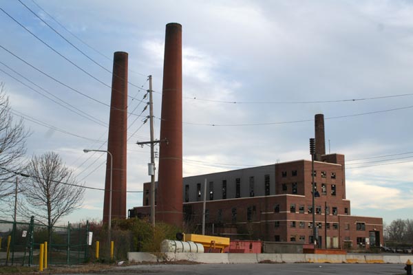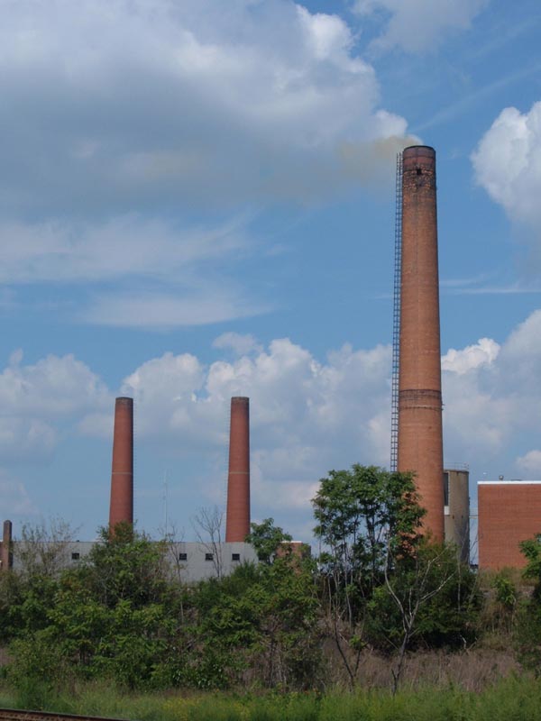 The smokestack of the local incinerator, spewing a foul-looking yellow haze.