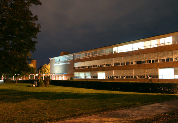 An ultra-modern high school in the International Style.
