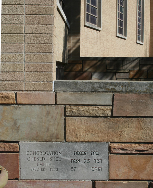 The Chesed Shel Emeth Society did not begin as a congregation, but rather a Jewish association concerned with helping the poor. Chesed Shel Emeth was founded by Russian Jews who had fled oppression in their homeland, and initially focused on providing funeral burial services to the indigent. A cemetery at Hanley and Olive was followed by a hospital and other social services; eventually the society bought a synagogue at Page and Euclid in 1919. In 1950 the Orthadox congregation moved into this Modern building, where it remained until disbanding in 1996.1