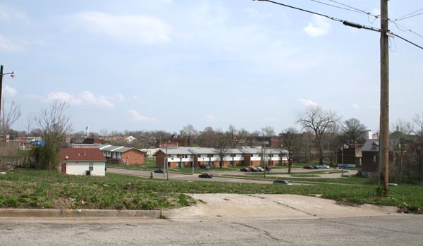 March 2007: the view down the hill from Ella Avene, toward Kienlen Avenue, the street which marks the city limits of St. Louis.