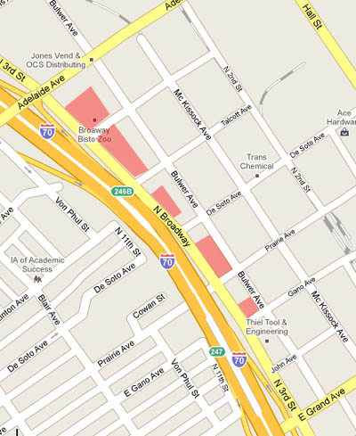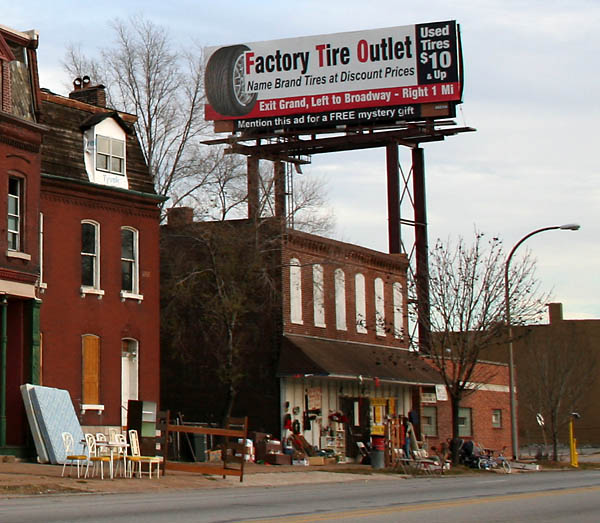 Just as their neighbors to the south were once part of Old North, so too were these houses once a contiguous part of the Hyde Park and O'Fallon neighborhoods west of the highway.