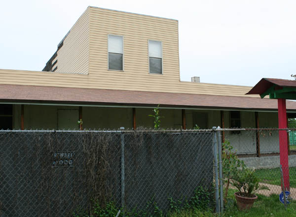 A block east, on Bulwer Avenue, stands this solitary survivor. Fenced off along with its lot, it serves a car storage or salvage yard.