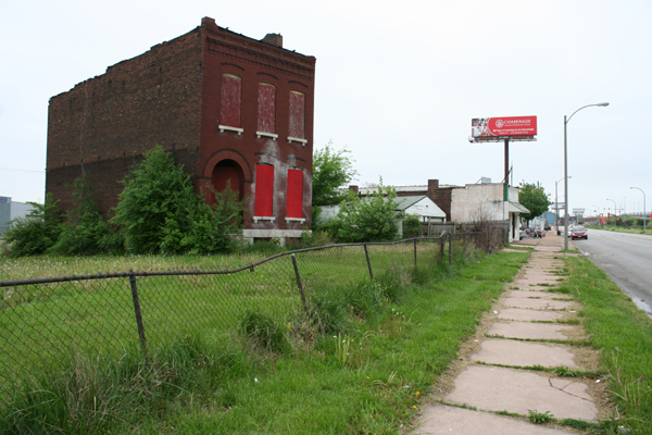 On the same block, facing Prescott Avenue, these four wood frame houses stood in the summer of 2006. They had vanished by 2008.