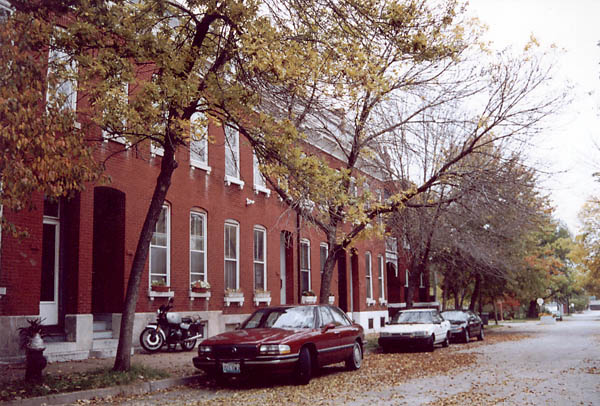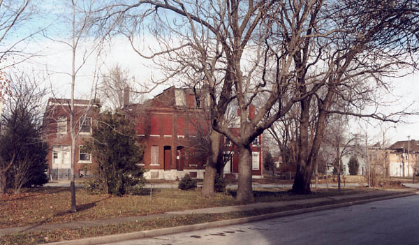 August 2003: These two houses face the park; they're right around the corner from Crown Candy's block.