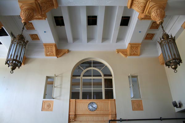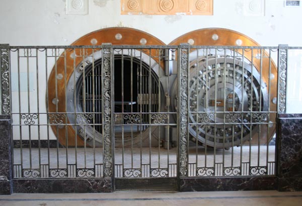 In the summer of 2007, I happened upon an Open House for the building's renovation into condominiums. I got to see several units nearly completed, renovation in the old banking areas, and the grand second floor lobby, still complete with its teller windows and massive vault door.