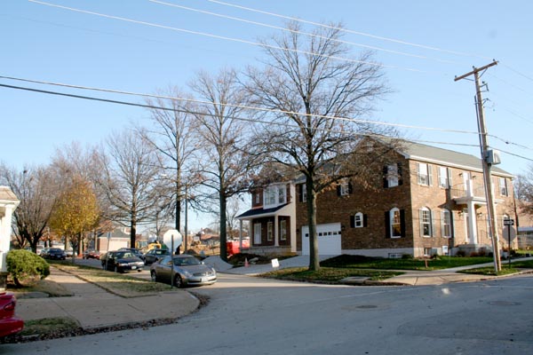 They're brick, with the usual slathering of vinyl siding in "neo-traditional" style. I do rather like the one on the corner, or at least I like the wrap-around columnaded porch. Serious porches are a true rarity in new home construction.