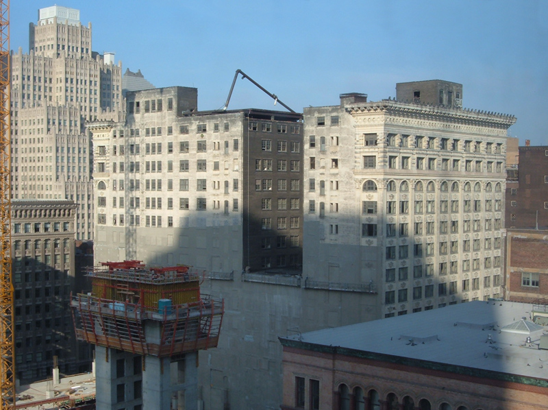 May 2006 - the bare eastern face after the Century's removal. Part of the new garage (unaffectionately referred to by local urban observers as the Garage Mahal) rises in the foreground.