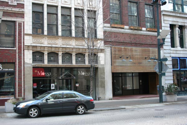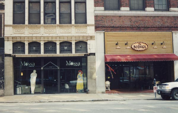 The much simpler brick building next door housed the Bogeda deli, a relatively early upscale retail pioneer in this stretch of Washington, which closed in 2001. After two years of vacancy, the Ritz on Washington opened in its place circa 2003. The space is empty again as of 2008.