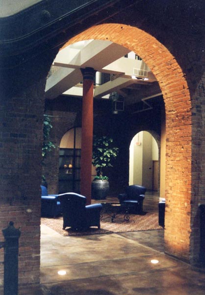 The great old warehouse was abandoned and unused through the 1990s, boarded up with dim prospects. However, renovation began in the summer of 2001. The building has been converted into 213 apartments, which began opening at the end of 2002. True to the building's scale, it's the largest residential project downtown in many years. The work was done by HRI, also responsible for the convention hotel at the old Statler just down the street;