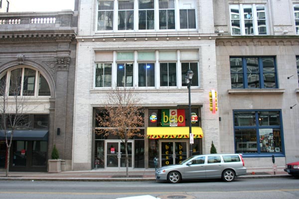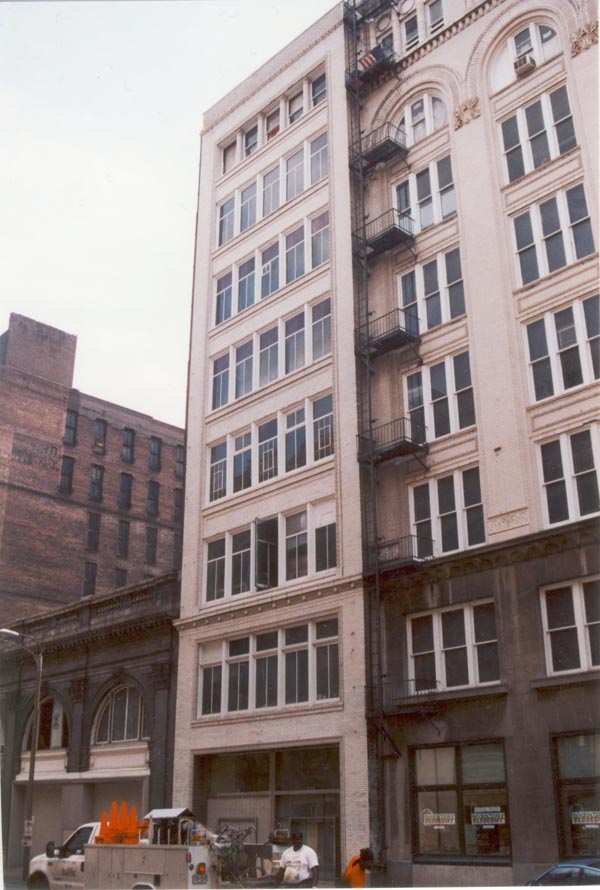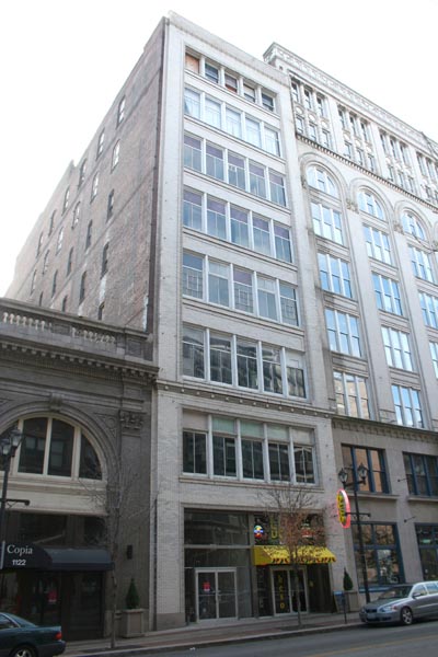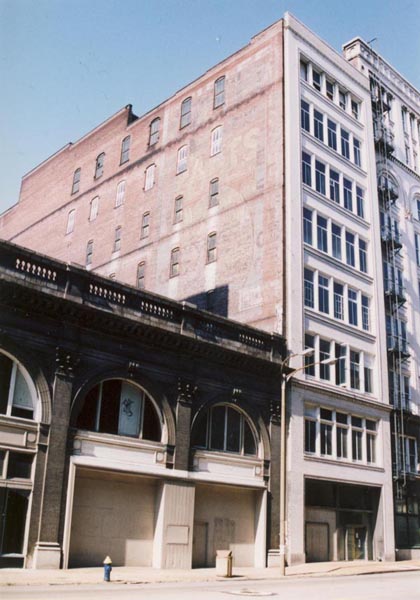 This extremely thin building stands side-to-back with the A.D. Brown building. The Curlee Clothing Company started here, expanding east into the present-day A.D. Brown Building next door in 1915.