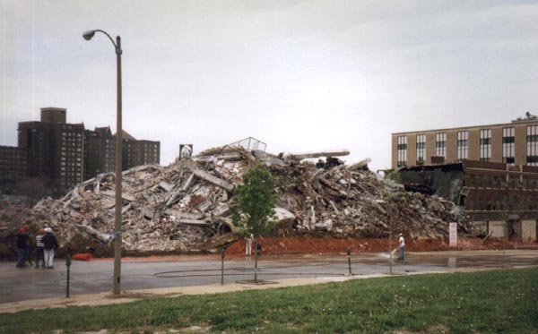 I have witnessed five building implosions, and this is the only one where I felt my heart wrench as the building went down. Watching the buff-colored bricks spill like a liquid from the cornice, then seeing the rest fall straight down into the rising dust cloud, was akin to seeing a piece of fine art burned.