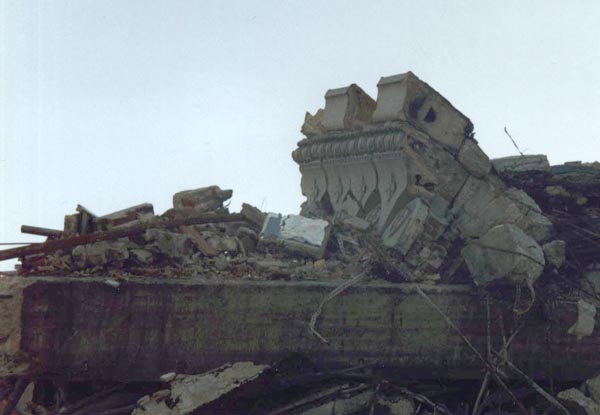 Once the dust had cleared, the rubble was a sorry sight indeed. The cornice looked as if it had done a face-plant into the street. Surviving bits of trim poked from the rubble, as if trying to remind witnesses of what had just been lost.