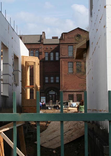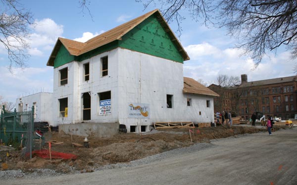 A visit to the site in March 2007 found site work underway and the first three houses in various stages of construction. The new street is partially laid and utilities are being placed.