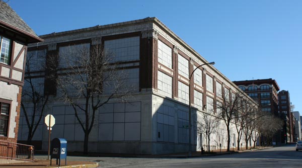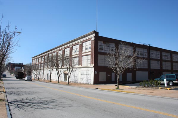 A long, low 3-story warehouse building with classical details, it was built as an investment property by Washington University, and housed an automobile distributor for its first two decades, followed by various radio and record suppliers and distributors. Since 1982, it has been home to Tire Mart, Inc.
