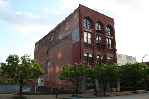 A simplified Romanesque building, with a 3rd story addition from 1910, added when the Weber Implement and Automobile Company moved in, adding this building to the long list of structures that form Locust Street's Automobile Row. More recently, it has housed Club 15.