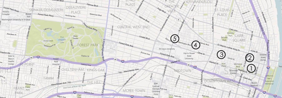 St. Louis radiated out in all directions from its starting point on the riverfront, but the most coherent and focust development happened along a spine running due west from downtown.
