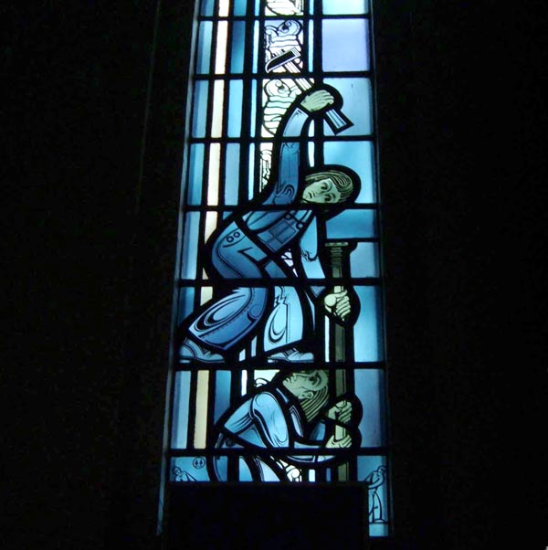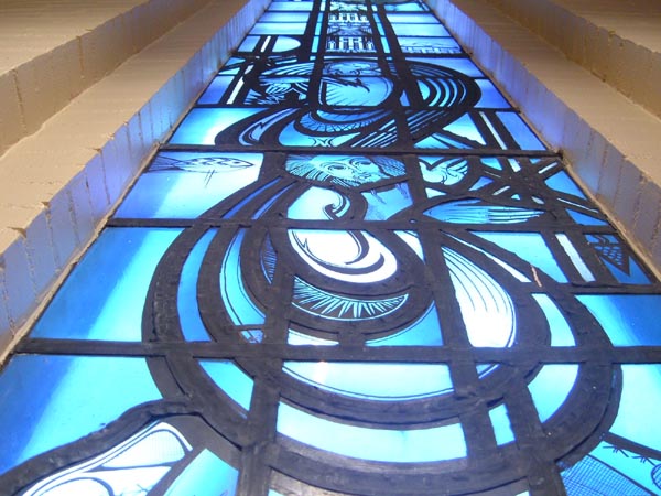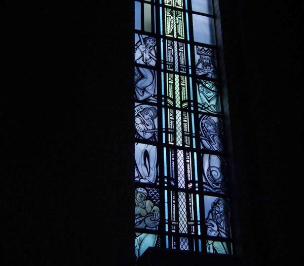 A 1939 church, located on the southwest side of the city, that was 20 years ahead of its time; it was completed on an astonishingly small budget of $75,000. The serene, spare interior features stunning Art Deco stained glass windows, whose purple and blue hues are not adequately captured by my meager camera.