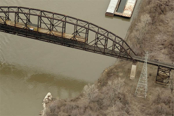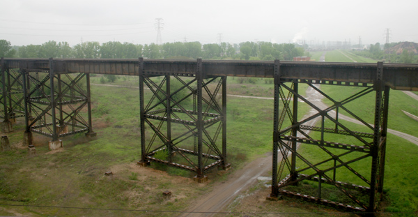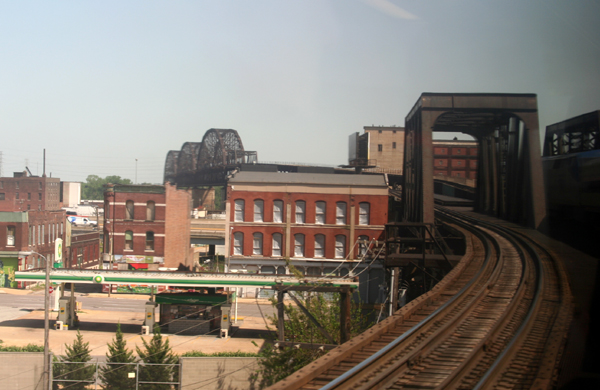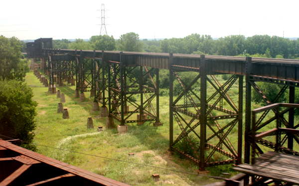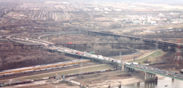 attempting to enter the bridge. A more comprehensive demolition campaign destroyed a good half-mile of the Illinois-side road approaches in 2003, further decreasing the likelyhood that this spectacular bridge will ever see upper-deck traffic again.