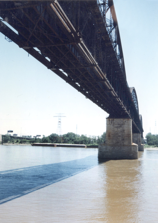 To this day, I retain quixotic dreams of the car deck reopening, either as a local bridge for car traffic, or a bike path and observation deck. Reopening MacArthur to car traffic would not solve St. Louis's long-standing trans-Mississippi traffic problems; the car deck is too narrow and twisty to handle heavy loads, and the bridge does not lead to any major streets. But pedestrian and bicycle traffic would be another matter altogether. Routing a bicycle path over the bridge (as was done with the the Chain of Rocks Bridge) would be a wonderful addition to the city's riverfront bike trail network.