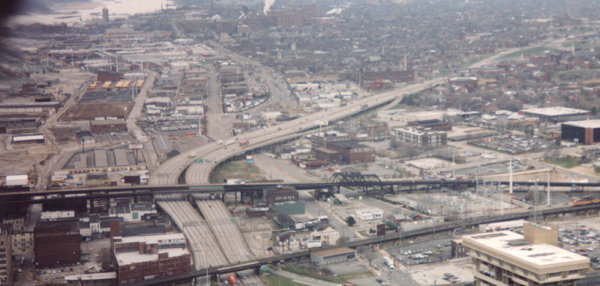 However, it was not danger which proved to be the roadway's undoing, but the coming of the Interstate system. The massive Poplar Street Bridge opened in 1967, and immediately drew away nearly all of the MacArthur's car traffic; soon the tolls were not even covering the tolltakers' payroll. The aging car deck was also badly deteriorated after decades of traffic and weather. It was closed to cars in 1981, and the MacArthur has been a rail-only bridge ever since.