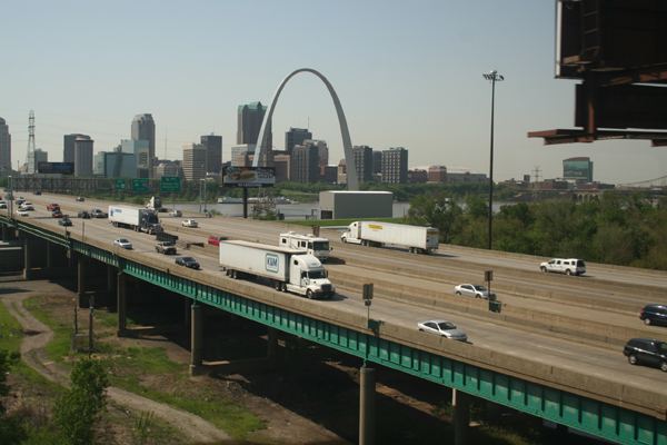 The notion of the MacArthur Bridge re-opening for public traffic of any kind is probably a wishful fantasy. But there is one way that ordinary people can discover the view from the mighty bridge: by Amtrak. Passenger trains enter the city by crossing the Mighty Mac. Those onboard are treated to postcard views of the city between the bridge's girders, as well as glimpses into the hidden netherworlds of industrial St. Louis and the east riverfront.