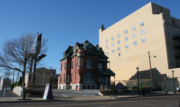 Isolated and overpowered by its enormous neighbor, a house originally built in 1890 as the Culver mansion