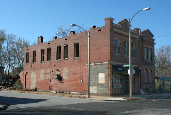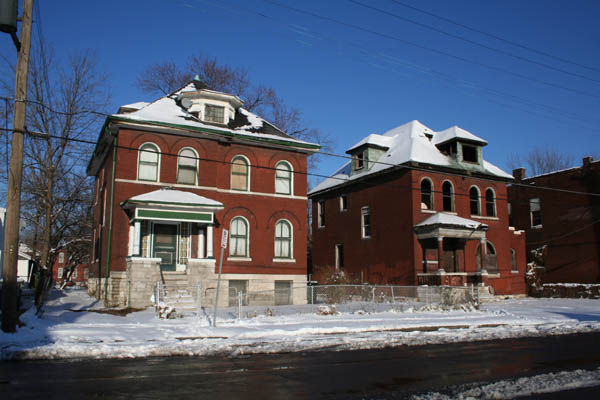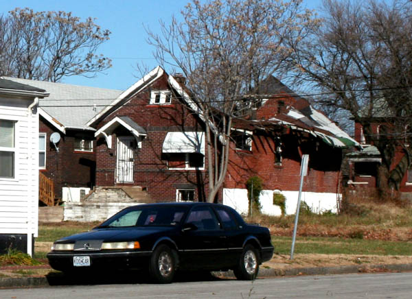 Step back a block from the park, and the general conditions are visibly worse. Lee Avenue and the streets around it show large expanses of vacant lots and damaged buildings.