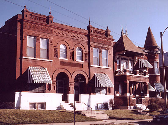 most ornate and articulated to be found in the city. Rather unfortunately, this block faces the back of a big-box grocery store -- a needed commodity in the area, but one that does considerable damage to the streetscape. Photographs from December 2002.