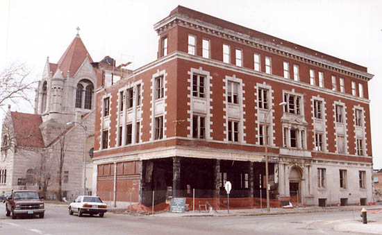 Top: The main Lister Building in March 2001, boarded up and for sale.