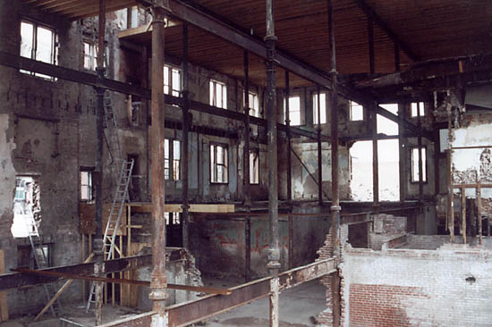 The interior of the building has been gutted down to the steel structure and brick walls and is receiving new