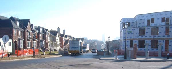 The cleared site of Gaslight Square has been totally redeveloped with new housing. Many buildings are complete; construction is ongoing