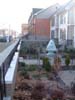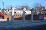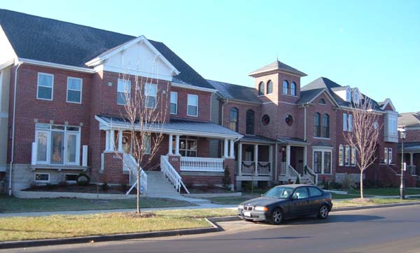 I probably am not supposed to like this new development. I'm not supposed to like that there are cheap aspects to the construction. I'm not supposed to like the faux historical forms, like the quasi-Italianate tower on one of the houses. I'm not supposed to like that the new housing will bring yuppies into town. I'm not supposed to like that this new construction replaces the last remnants of an enormously historical block of St. Louis. And I should be outraged that they put up a memorial to the old Square. A memorial! How dare they mock what they've torn down!