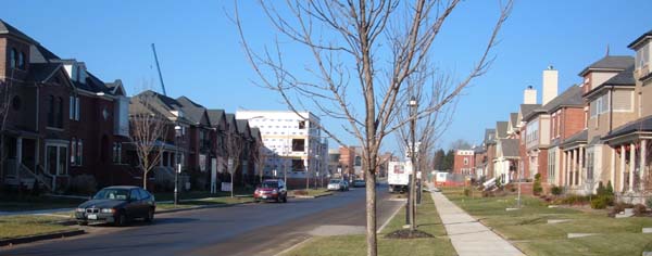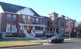 But putting aside that caveat -- I am most impressed by the urbanity and variety of forms of the new housing. There are single family houses, twins, townhouses, generous front porches, intimate sunken gardens, and a corner apartment building. Some pay a degree homage to St. Louis vernacular, some are entirely contemporary. And, to be sure, some are suburban in style, though not in siting; some bear the dreaded vinyl siding. But the important factor here is the visual variety they create. This block of Olive -- once thriving, once a wasteland -- is a delight to walk down once again.