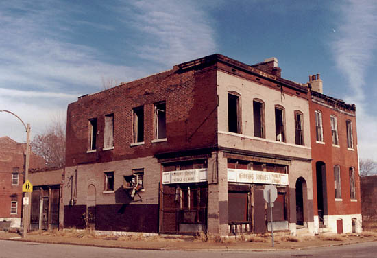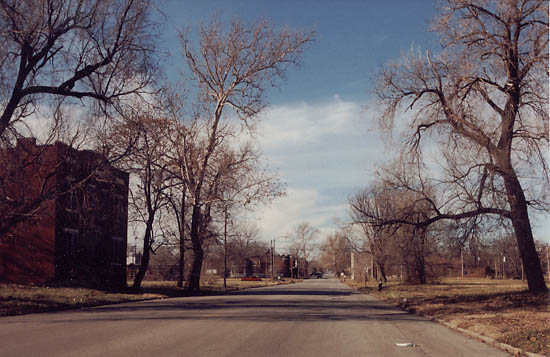 The blocks around Cook and Finney are zones of widespread demolition. At top is a westward view of Finney near Sarah, December 2002.