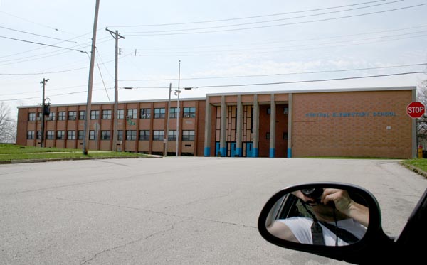 March 2007: the Mid-Century Modern building of Central Elementary School. Yep, that's me and my camera in the rearview.
