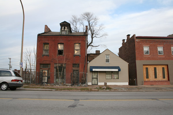 Just as their neighbors to the south were once part of Old North, so too were these houses once a contiguous part of the Hyde Park and O'Fallon neighborhoods west of the highway.