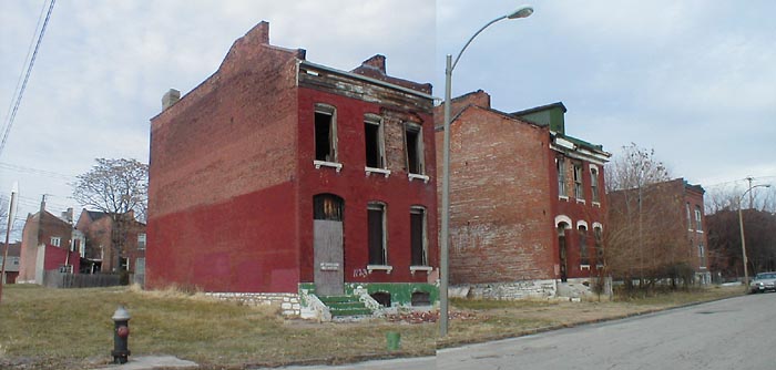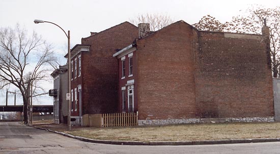 January 2003: 1100 Chambers Street. This view duplicates a 1960 photograph on page 159 of St. Louis: Landmarks and Historic Districts. The older photo shows about twice as many buildings as remain here.