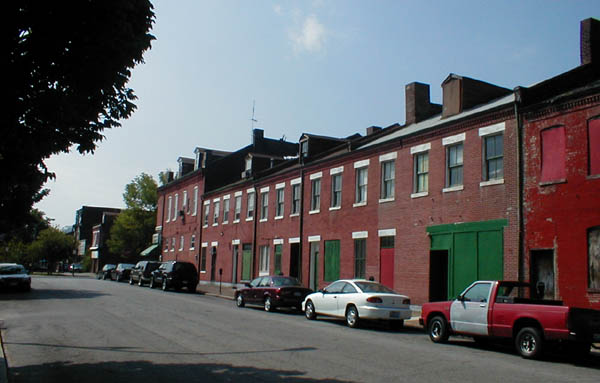 August 2003: The remainder of this block is, by and large, in good condition. Two abandoned and badly deteriorating houses at the north end of the block long threatened its integrity, but both have undergone amazing transformations.