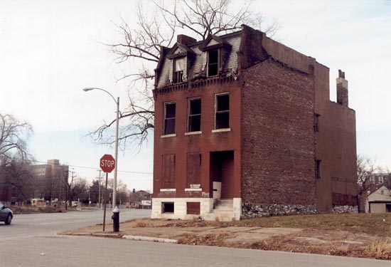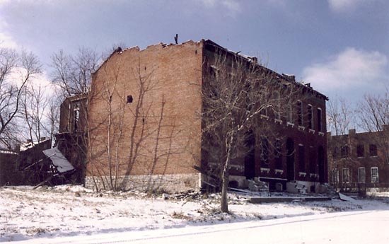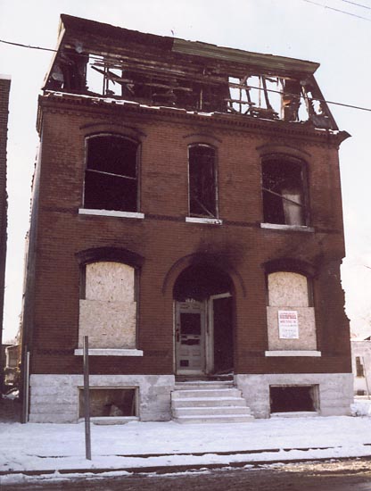 January 1999:The victim of a total roof collapse, this block at Sullivan and 20th has since been demolished.