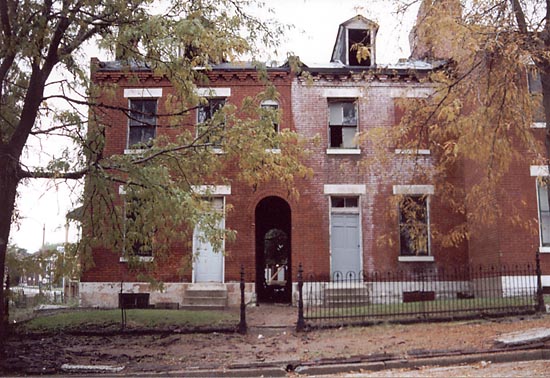 October 2002: A pair of row houses on the 1200 block of Hebert, with a "mousehole" allowing through access to the back. A checkup in September 2006 revealed that at least one of the pair is collapsing in the back.